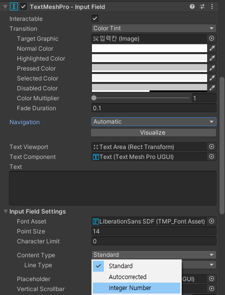 입력칸의 텍스트 컴포넌트의 Content Type을 Integer Number 정수형으로 변경해주면