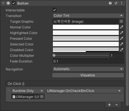 유니티내 에서 지원해주기 때문이다.(컴포넌트 Button)