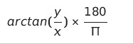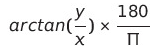 수학. 아크 탄젠트(y, x) 곱하기 180 나누기 3.14.....