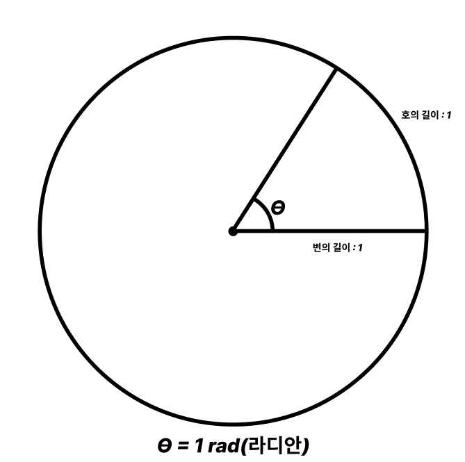 호의 길이가 1인 부채꼴의 중심각이 1 라디안이다.