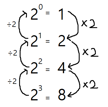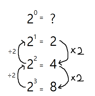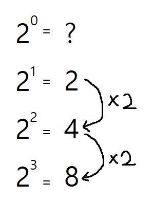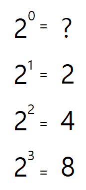 그럼 일단 넘기고 다음으로 가보자. 2의 0 제곱은 무엇일까?