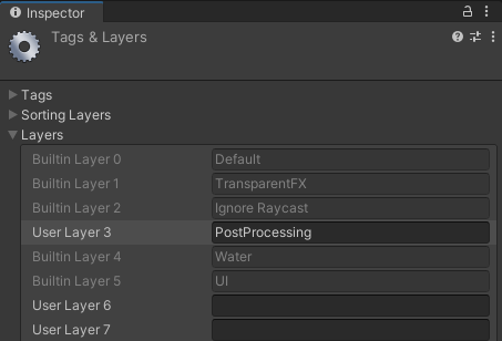PostProcessing이라는 이름의 레이어를 추가해준다.