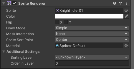 Sprite, Color , Filp , DrawMode , MaskInteraction, Sprite Sort Point,