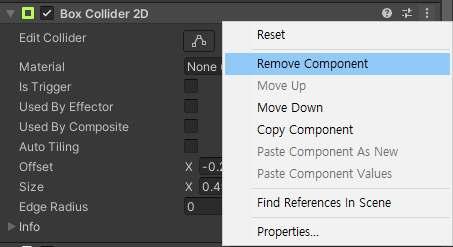 점 3개를 누르면 떴던 메뉴에 있던 Remove Component 가 있을 수가 없는것이다.